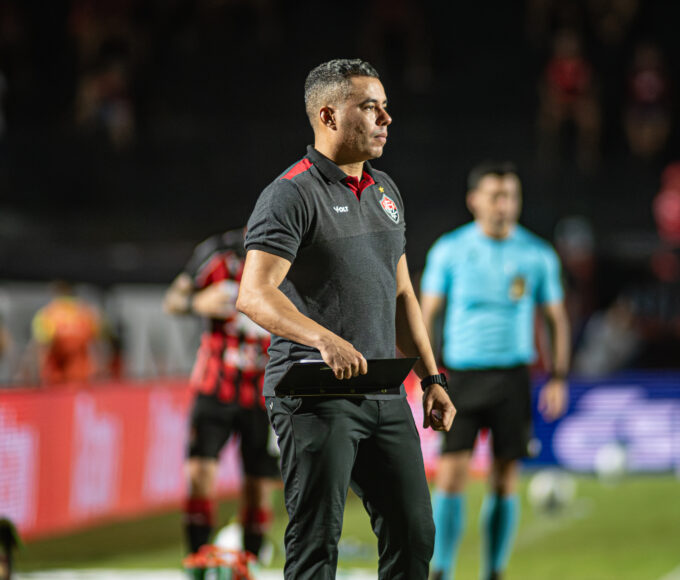 Jair Ventura a beira do campo pelo Vitória – Foto: Victor Ferreira...