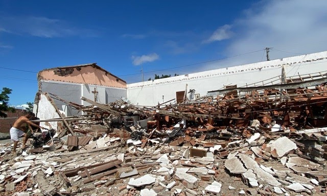 A Capela Nossa Senhora de Fátima desabou na manhã deste sábado (23), por volta das 10h, no povoado de Tapera, a cerca de 5 km do município de Conceição do Coité, no interior da Bahia. Apenas uma parede, que tinha a imagem de Jesus Cristo pendurada, permaneceu em pé.