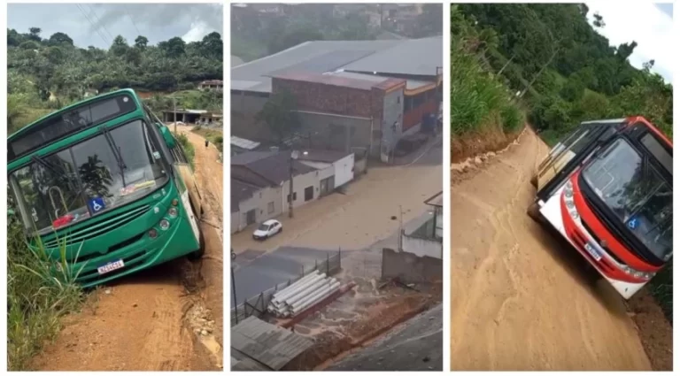 Outros registros mostram ônibus atolados em estradas da zona rural. Segundo relato de um morador, estudantes precisaram descer de um coletivo porque o veículo não conseguiu subir uma estrada de barro. “Aqui não passa nem jegue traçado”, afirmou.