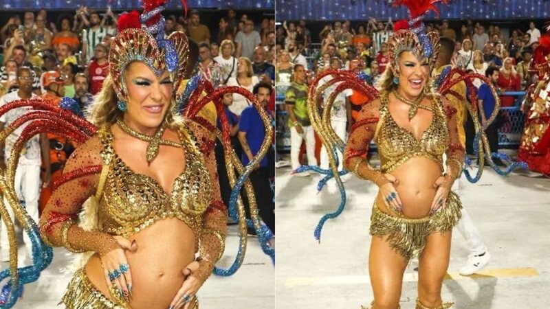 Grávida de cinco meses, a dançarina Lore Improta desfilou na madrugada desta terça-feira (17) como musa da Unidos do Viradouro, na Marquês de Sapucaí, pelo Grupo Especial do Carnaval do Rio de Janeiro.