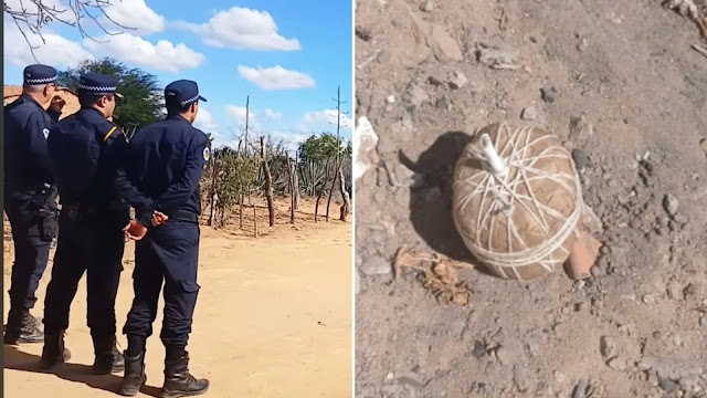 Uma suposta bomba encontrada na manhã desta sexta-feira (15) no fundo de uma residência no distrito de Lages do Batata, interior de Jacobina, foi destruída pela Guarda Municipal. O artefato, de formato esférico, estava envolto em papel pardo, amarrado com barbante e possuía um pavio branco aparente na parte superior.