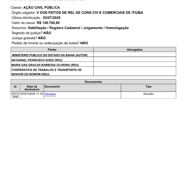A Ação Civil Pública busca a declaração de nulidade do pregão e do contrato, bem como a condenação solidária dos três réus ao ressarcimento integral do dano causado ao patrimônio do Município de Itiúba. O caso está registrado sob o número 8000892-70.2025.8.05.0132 e tramita na Vara dos Feitos de Relações de Consumo, Cíveis e Comerciais de Itiúba.