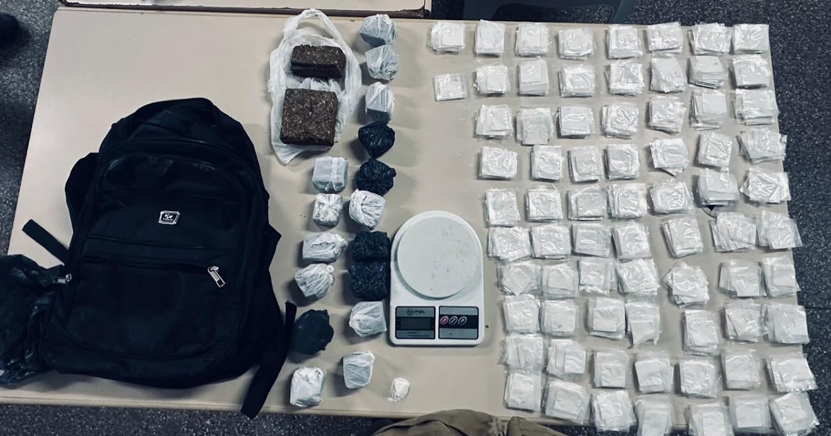 Após acionamento, a guarnição realizou diligências no local indicado e abordou um indivíduo com características semelhantes às informadas. Durante a busca, foram encontrados 715 papelotes de substância análoga à cocaína, 18 tabletes de substância análoga à maconha e uma balança de precisão.