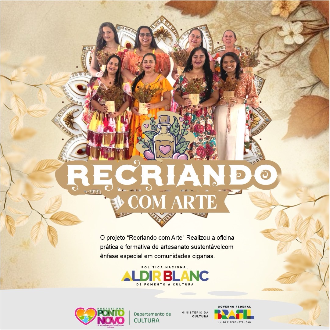 O projeto “Recriando com Arte” realizou uma oficina prática e formativa de artesanato sustentável, com foco especial em comunidades ciganas. A iniciativa buscou unir o saber tradicional à sustentabilidade e à geração de renda, transformando materiais recicláveis como garrafas de vidro, papelão, flores secas, latas, tecidos e outros elementos em novas possibilidades criativas e econômicas.