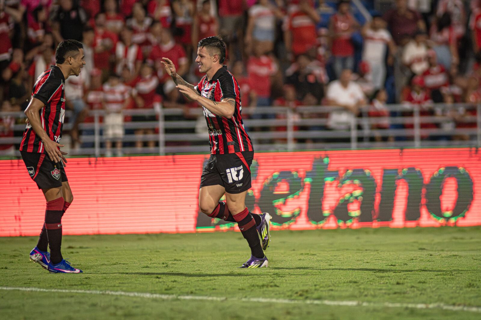 Renato Kayzer e Erick comemorando gol contra o CRB |  Foto: Victor Ferreira/EC Vitória